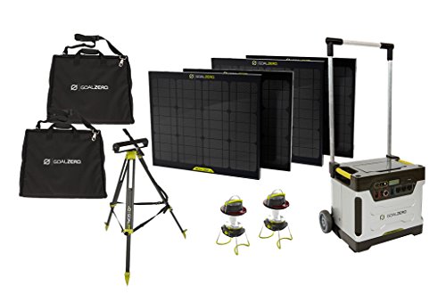 Goal Zero Yeti 1250 Solar Generator Kit with Cart, 4 Boulder 30 solar panels, 2 Panel Carrying Cases, 1 Solar Tripod (Holds 4 Panels), 3 Lighthouse 250, 10 Boulder Clips