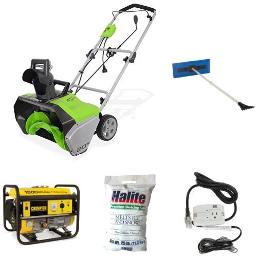 Electric Snow Thrower, Broom, Ice Melt, De-Icing Cable, and Generator Bundle