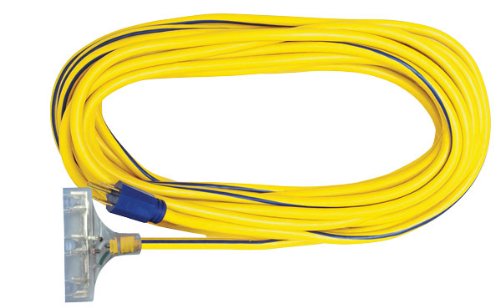 All images of Voltec 05-00125 12/3 SJTW Outdoor Power Block Extension Cord with Lighted End, 100-Foot, Yellow with Blue Stripe